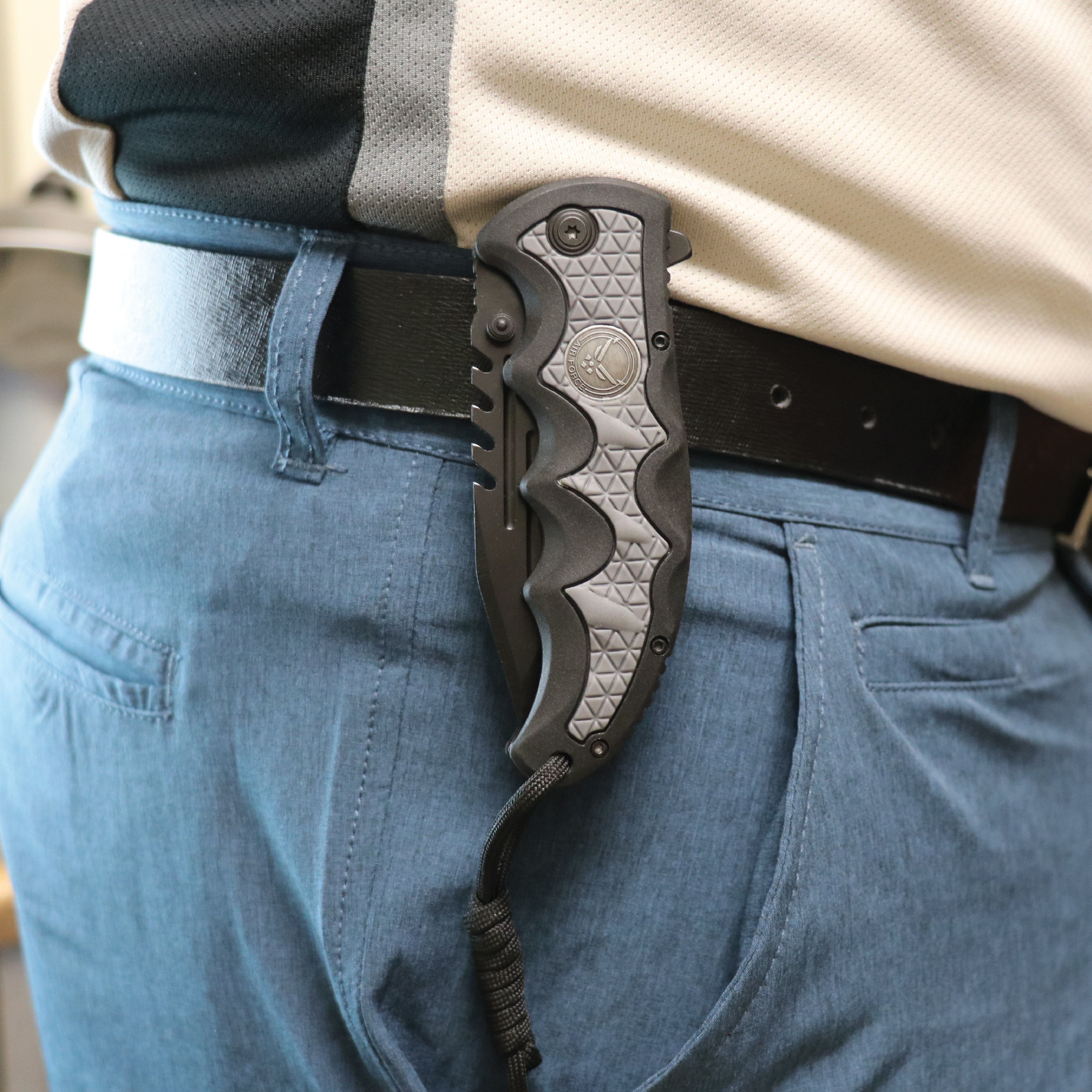 The Military Medallion 8.5" Rescue Knife is a solid knife with great heft. The rugged stainless steel blade will handle almost any task you throw at it. Opens super quick with just your finger. Measures 5" closed, 8.5" open. Non-slip rubber insert on the handle and a steel belt clip to keep it handy. Paracord attachment for emergencies. Military medallion inset.