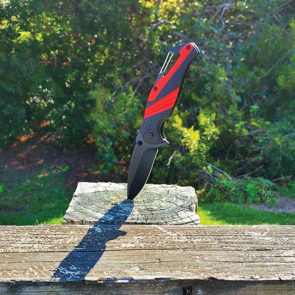 EliteEdge Striped Tactical Folding Knife w/Carabiner