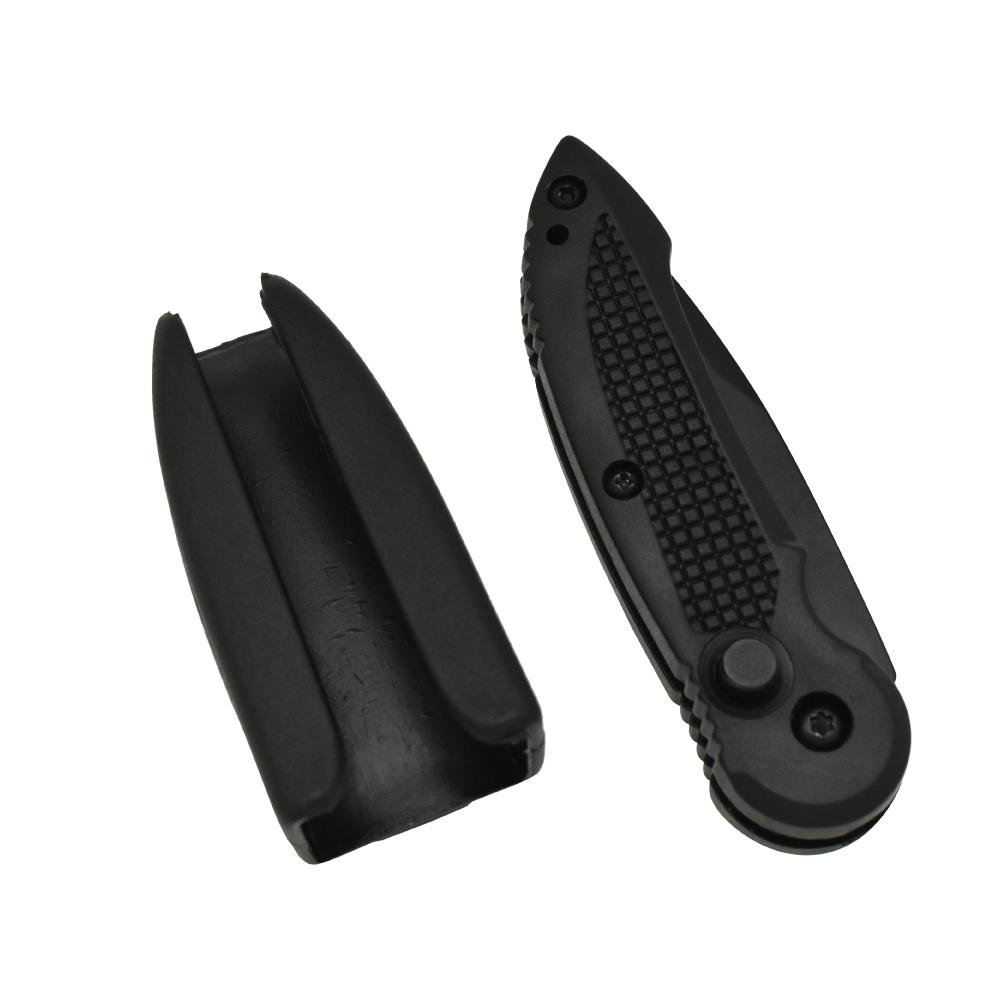 The Spring Assisted 2" Knife is a push-button assisted-open stainless steel knife with a coated 2" stainless steel blade and hard plastic handle. Fast opening with just a push of a button and fits snuggly in an included plastic holster with a belt clip.