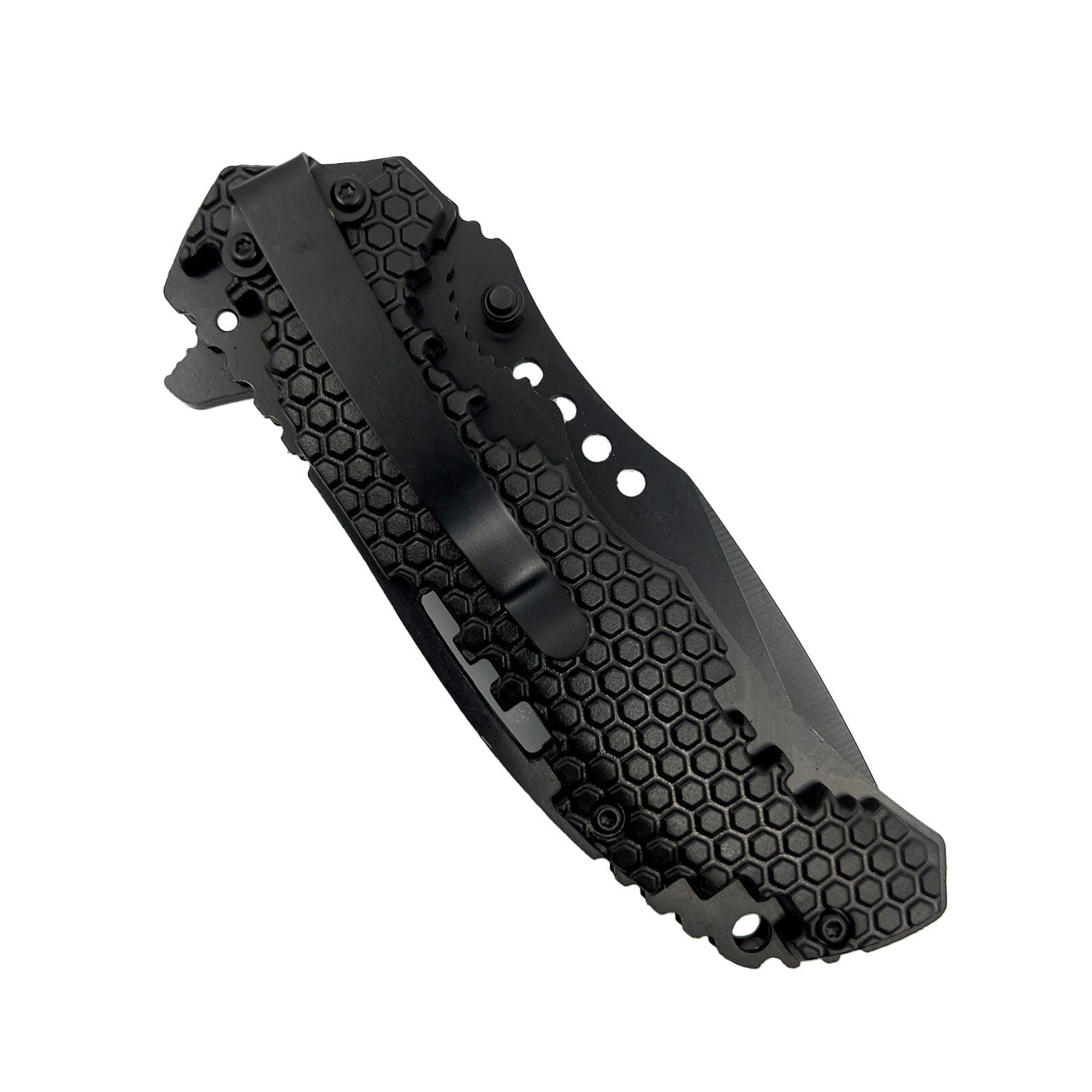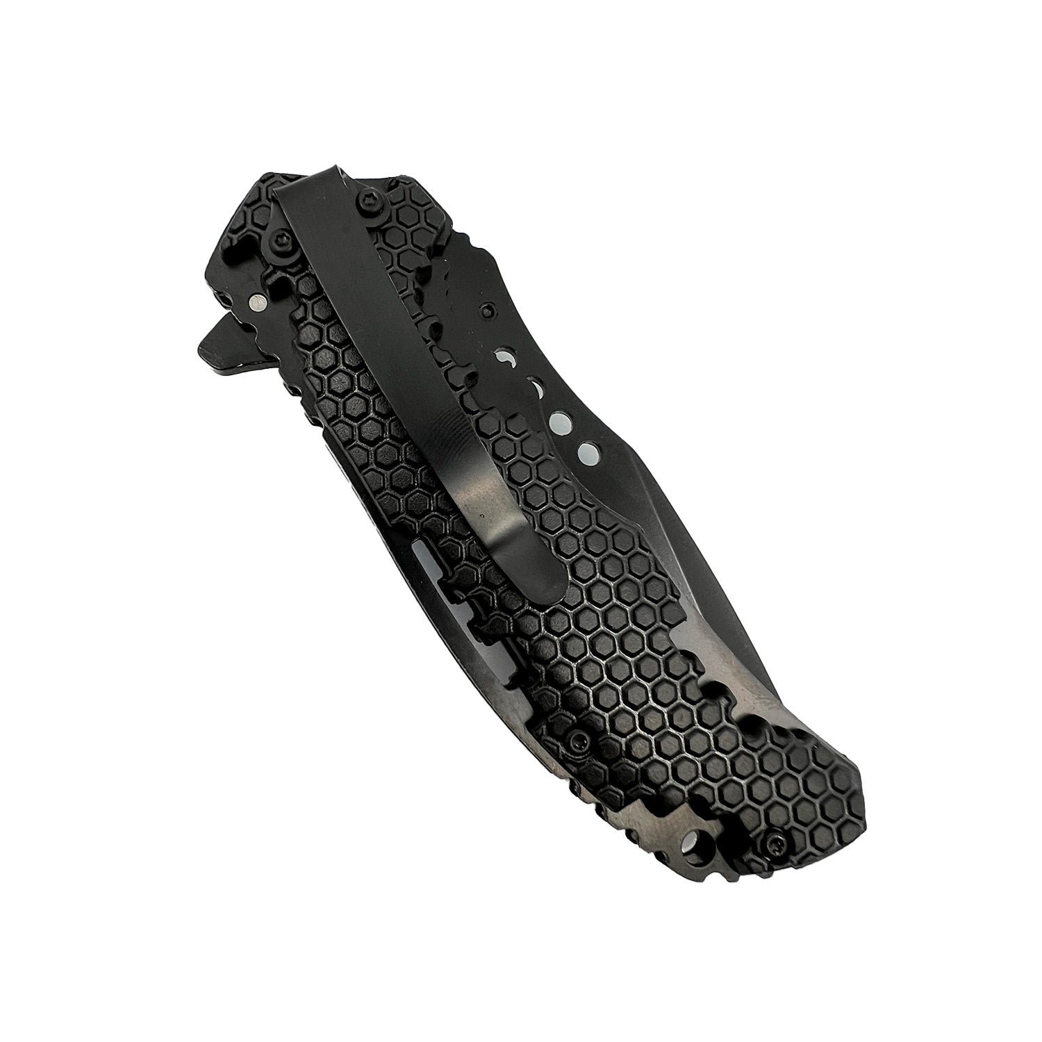 3.5" Black 440 Stainless Steel  Blade. 4.75" ABS handle with clip.
