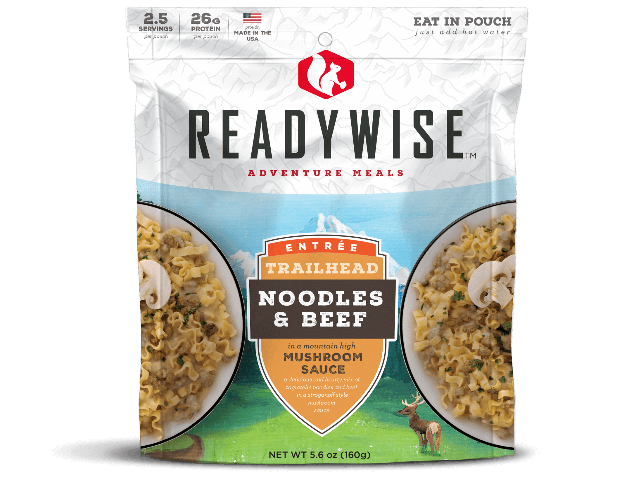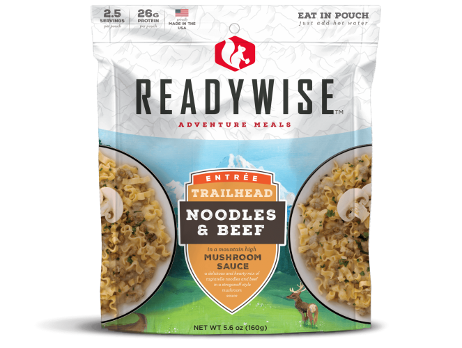 Each pouch of Trailhead Noodles with Beef contains 2.5 servings and is resealable. These pouches are lightweight making the easily portable for any outdoor adventure. Just add water and you can eat directly from the pouch.